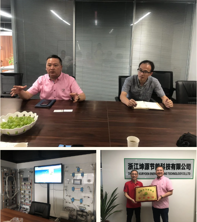 8月6日下午,协会秘书长包优祥、杭州巨奥能源科技有限公司总经理胡通福、杭州倍捷科技有限公司总经理金磊、浙江正泰能效科技有限公司经理沈丹桦等人赴浙江坤源节能科技有限公司走访交流。浙江坤源节能科技有限公司总经理张明伟、监事周顶峰与到访人员进行了座谈交流。协会授予坤源节能“会员单位”铜牌。